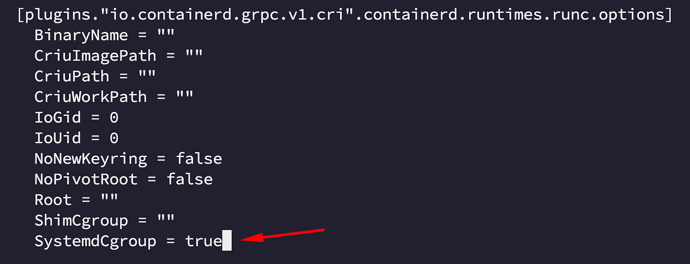 In the config.toml file, set SystemdCgroup to true
